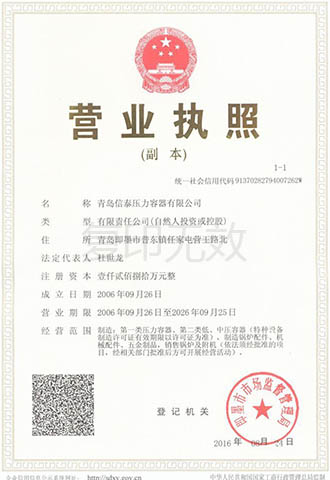 青島信泰壓力容器有限公司擁有山東省質量技術監督局頒發的D1D2類壓力容器設計許可證和制造許可證,產品主要有:低中高壓儲氣罐系列、壓縮空氣罐、氮氣罐,氧氣罐,氫氣罐,真空罐不銹鋼儲氣罐、蒸汽儲氣罐、分氣缸,氣體緩沖罐系列、換熱器,穩壓罐產品、儲存容器,化工容器、標準,非標壓力容器系列產品,主要配套與石油、化工、制藥、熱電、啤酒、機械制造、環保等行業所需D級壓力容器產品,形成多品種的中低壓力容器生產品種及規模。公司本著“客戶第一,誠信至上”的原則,熱誠歡迎各界朋友前來參觀、考察、洽談業務。